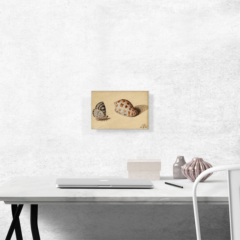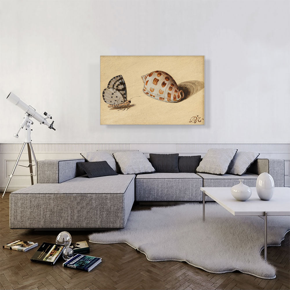 An Arrowhead Blue Butterfly and a Scotch Bonnet Sea Shell