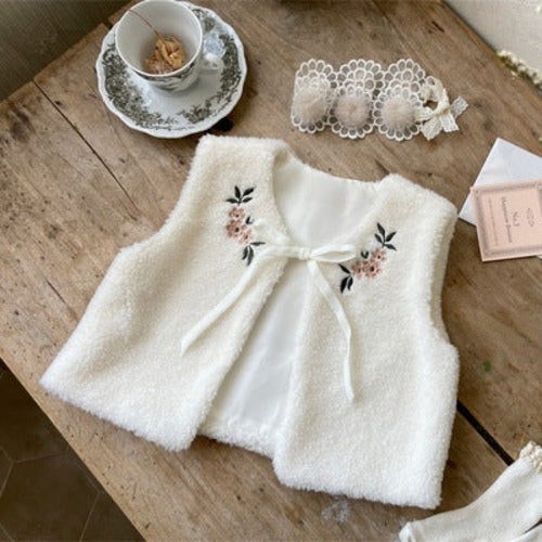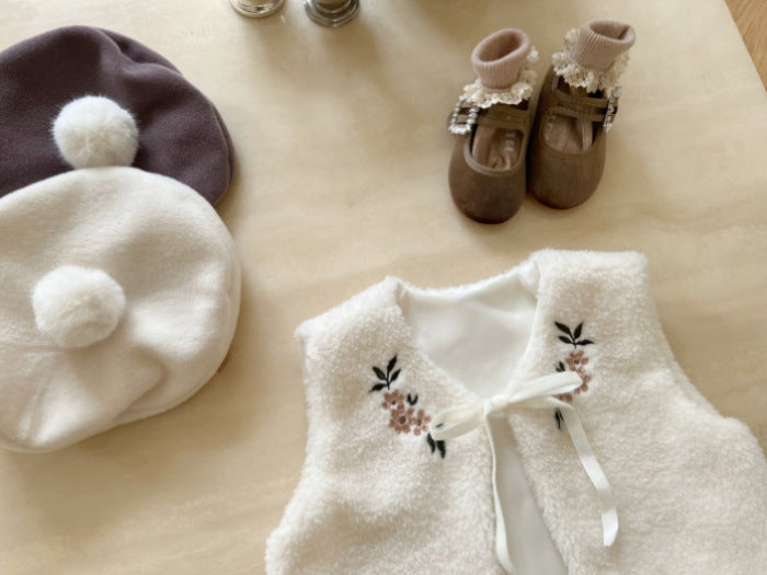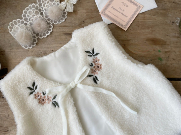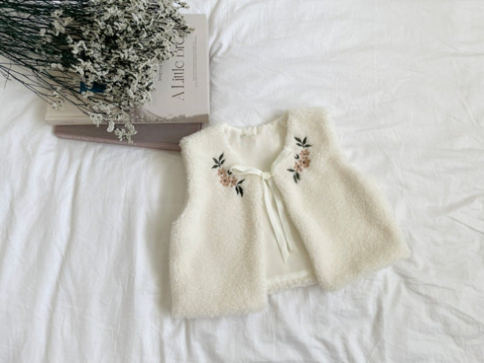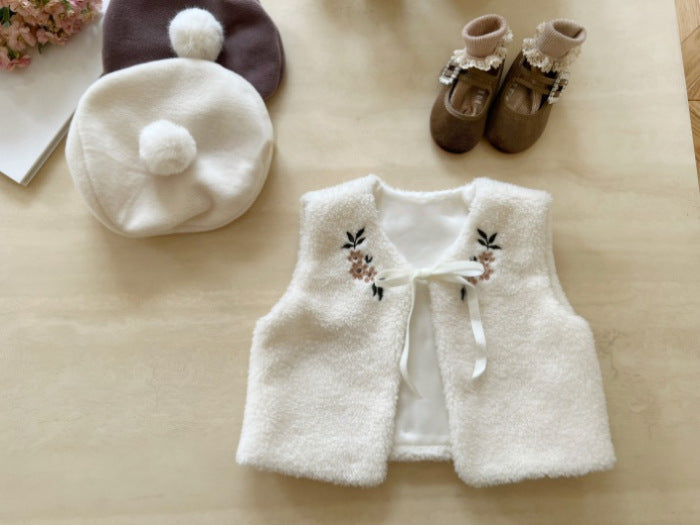 Baby Floral Embroidered Pattern Lamb Wool Vest Jacket