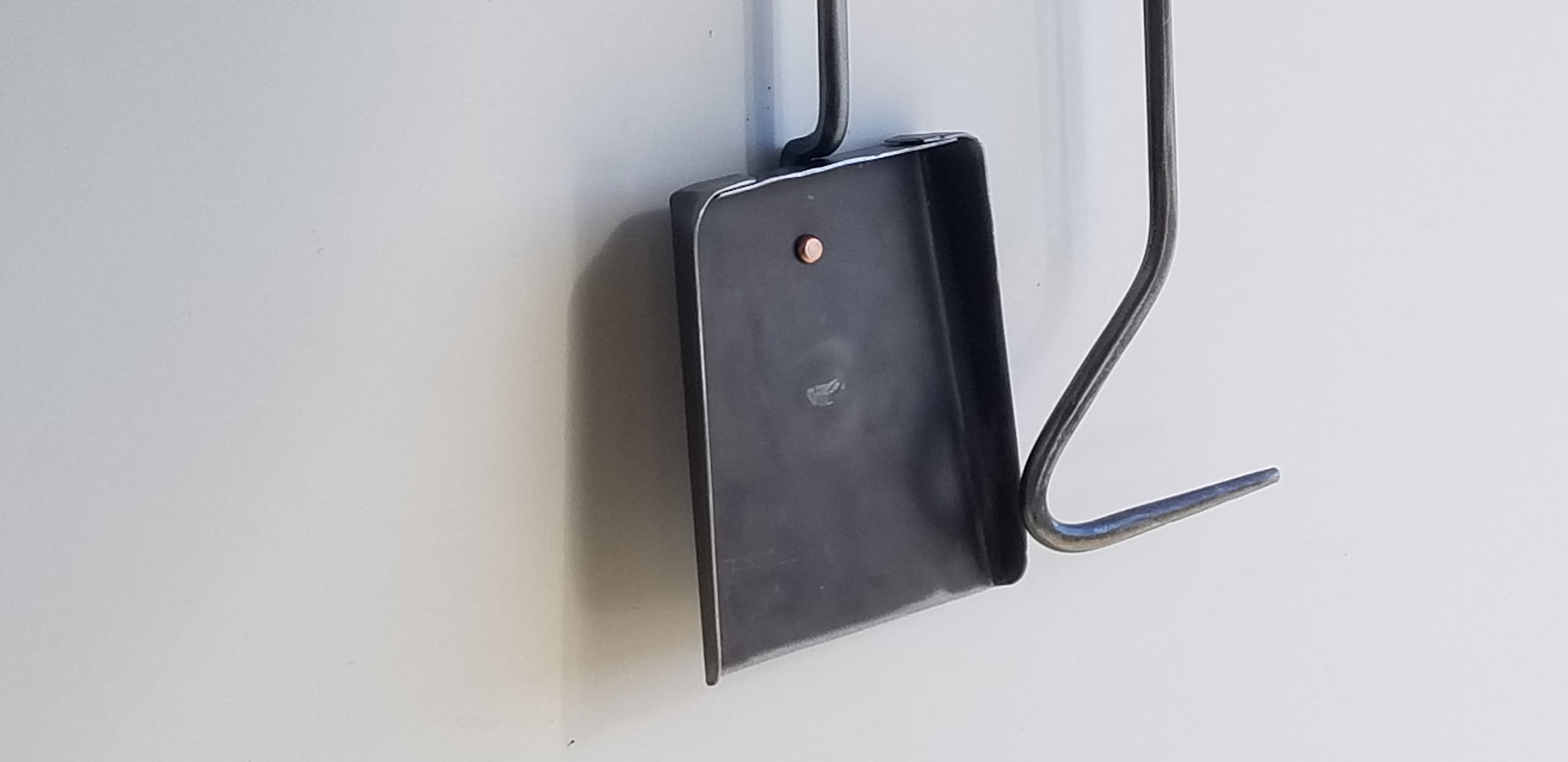 3 piece hand forged wall hanging fireplace tool set. Includes shovel, poker and wall hanger. Mounting hardware not included.