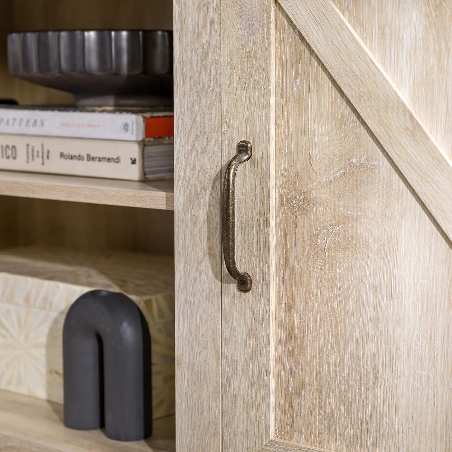 - Charming Design: The barn door style cabinet doors and metal accents add a rustic touch, making it a stylish centerpiece.