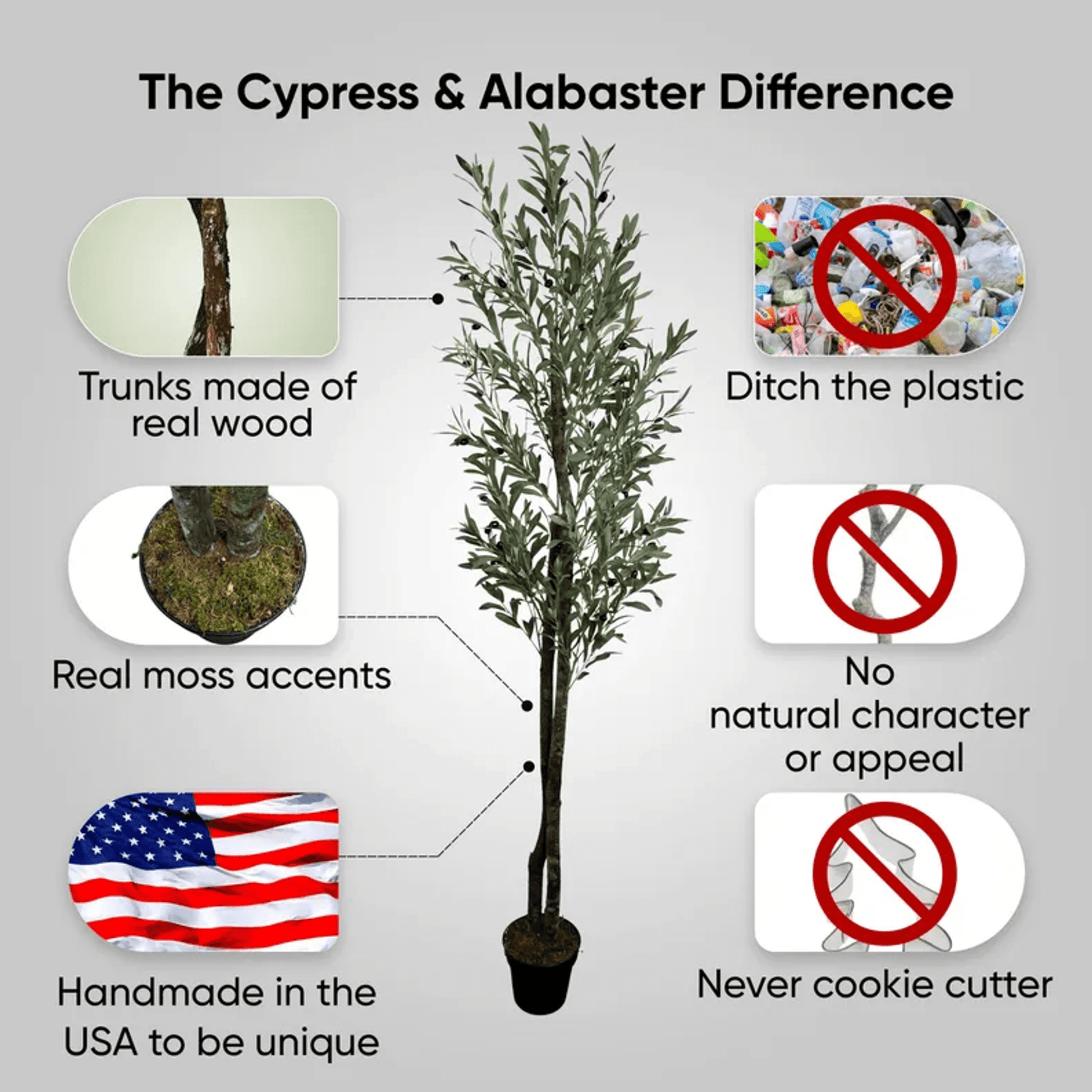 Handmade by a talented local small business in the United States, this tree not only showcases the skill and artistry of local artisans but also represents an investment in the craftsmanship that makes your home distinctive. Its robust and sturdy architecture makes it ideal for repotting in eco-friendly fiberglass planters, offered by Cypress & Alabaster, which perfectly complement the tree's natural elegance.