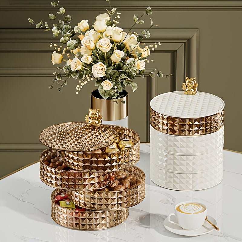 Lucky Cat Rotating Snack Tray with Lid: Perfect for Parties 🎉
