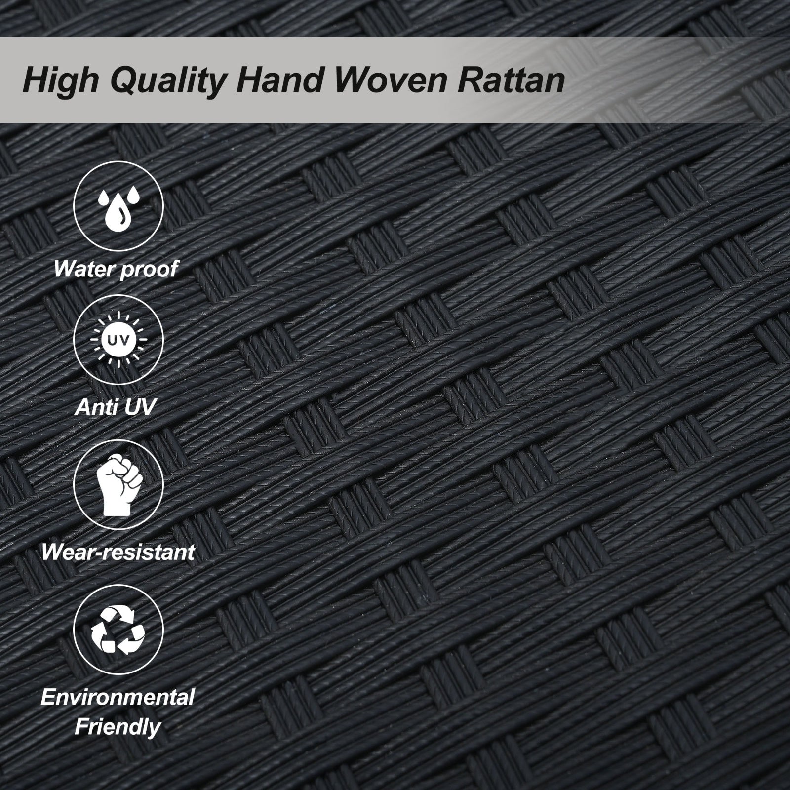 • Contemporary design – minimalist silhouette with handwoven black PE rattan
