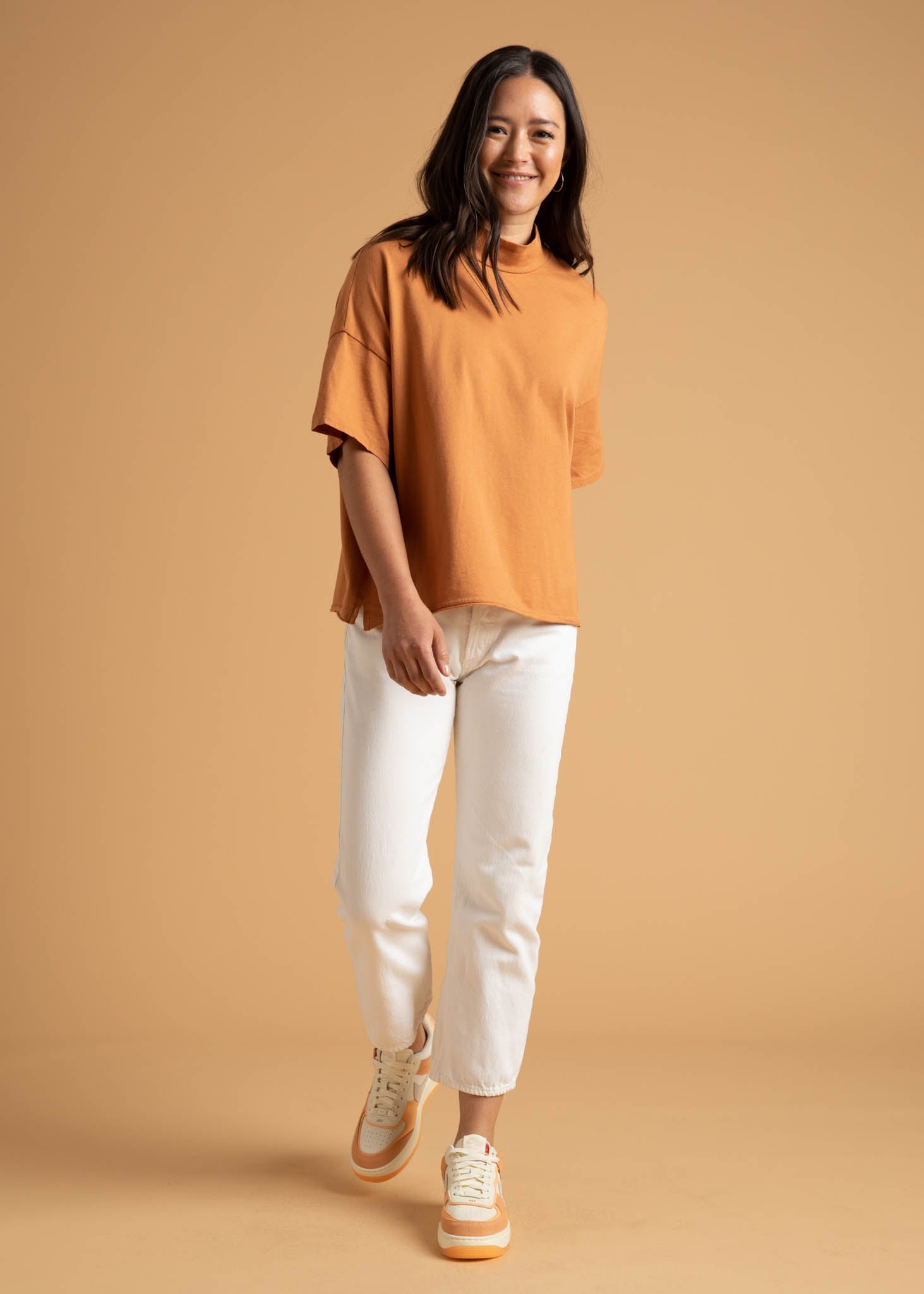 - Boxy crop with mock neck