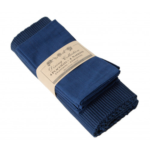 Mr. MJs Trading AG-05321 4 Placemats Plus 4 Napkins Set, Navy Blue
