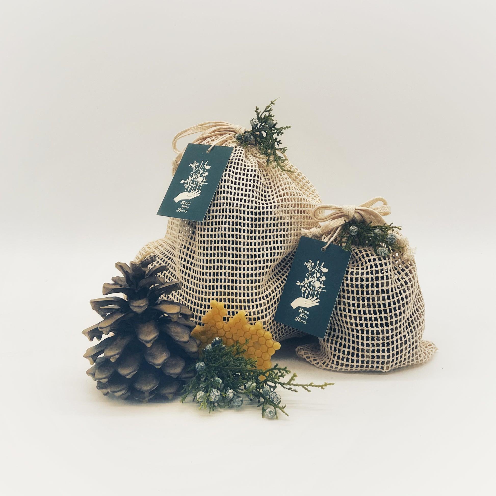 Comes with 100% cotton mesh bag. 5-6 honey pine cones in a bag.