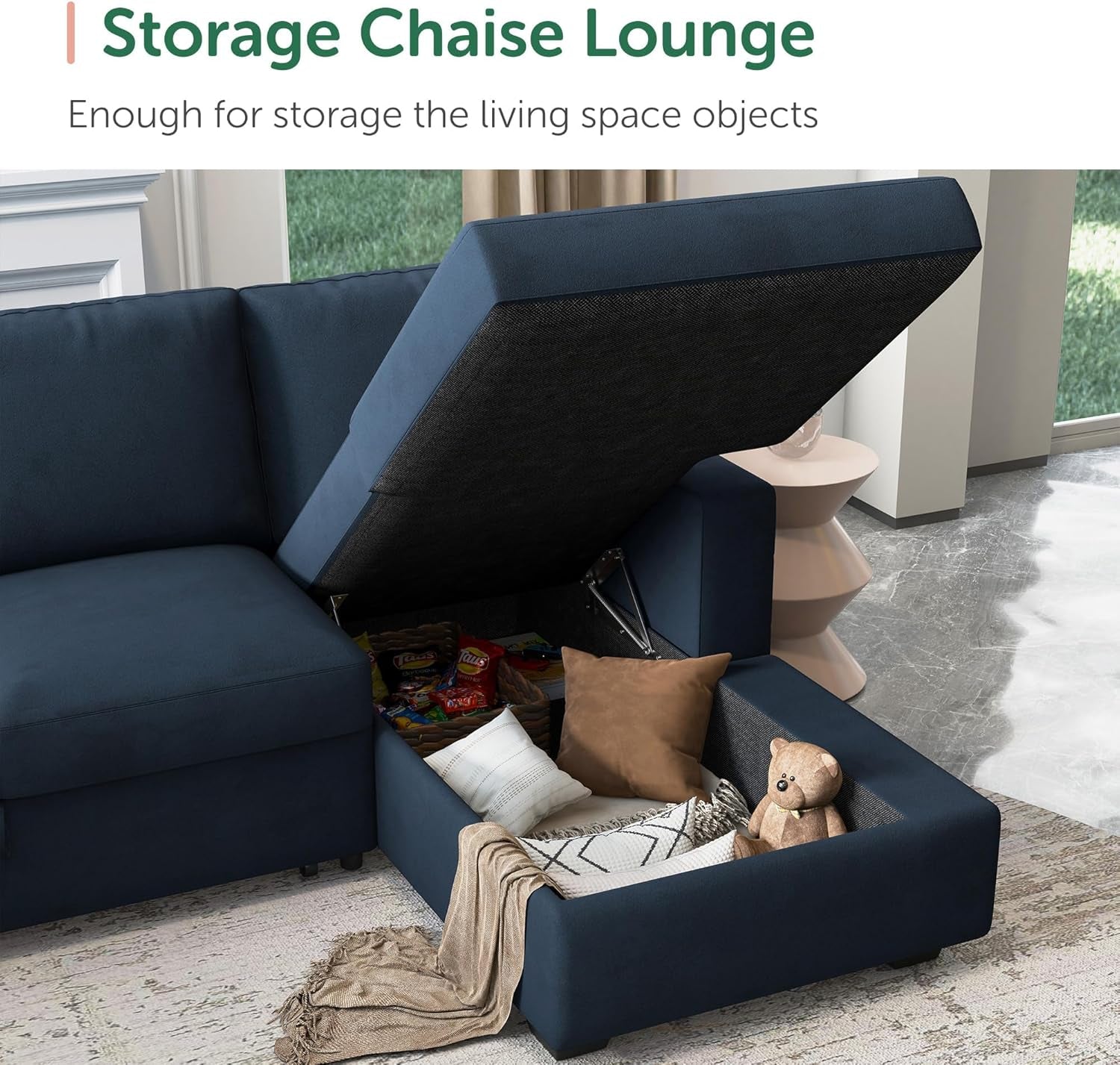 Versatile U-Shaped Sleeper Sofa with Storage Chaise