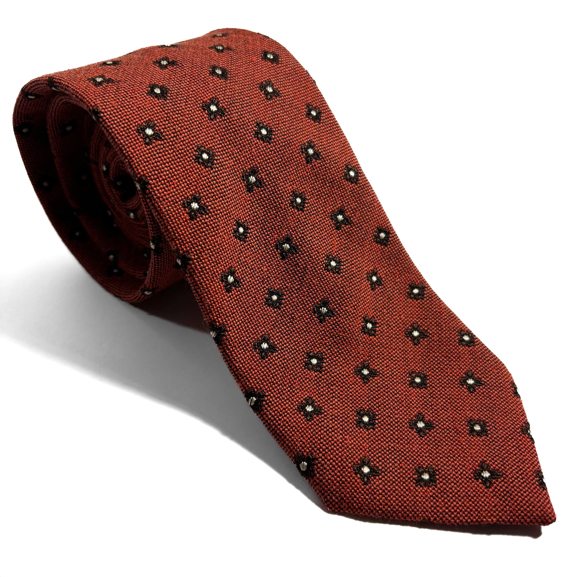 Terracotta Orange Floral Wool/Silk Jacquard Tie