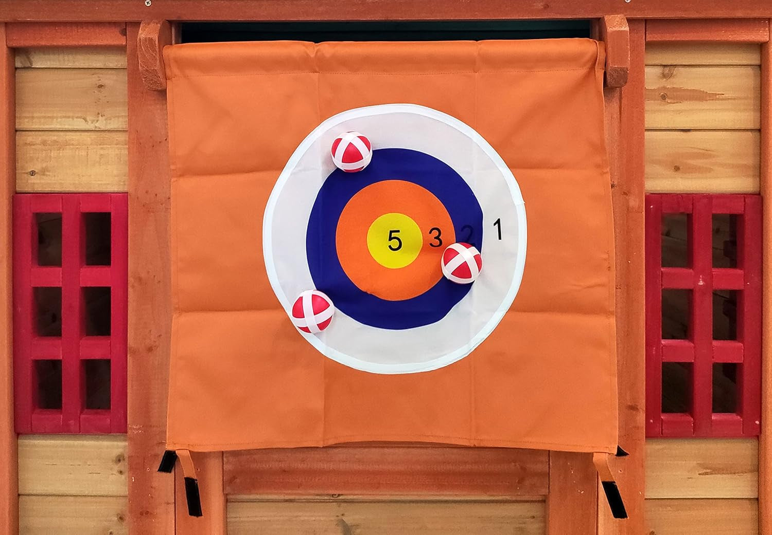Wooden Cottage Playhouse with Awning, Ball Wall