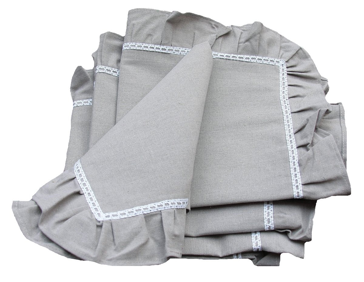 XD15110 Ruffle Trim W/White Lace Napkins, 20"X20", Set of 4